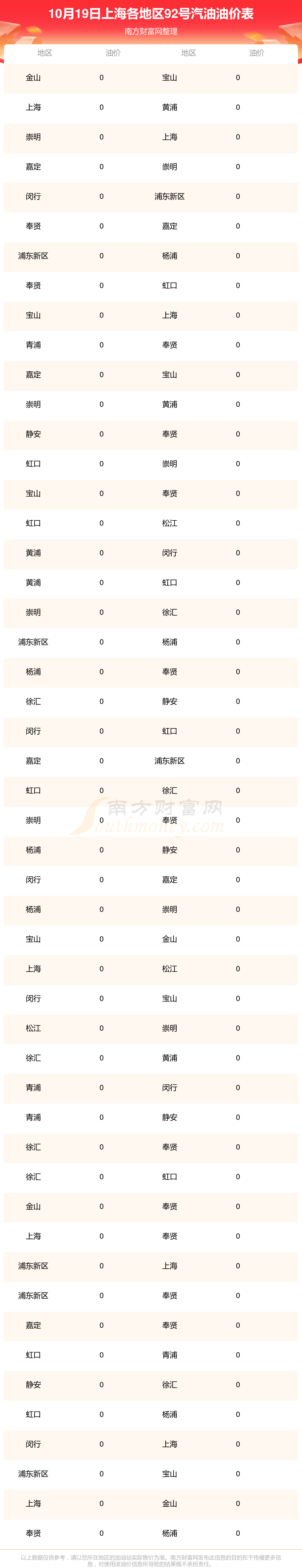 上海92号汽油今日油价查询_上海92号汽油油价走势图(10月19日)