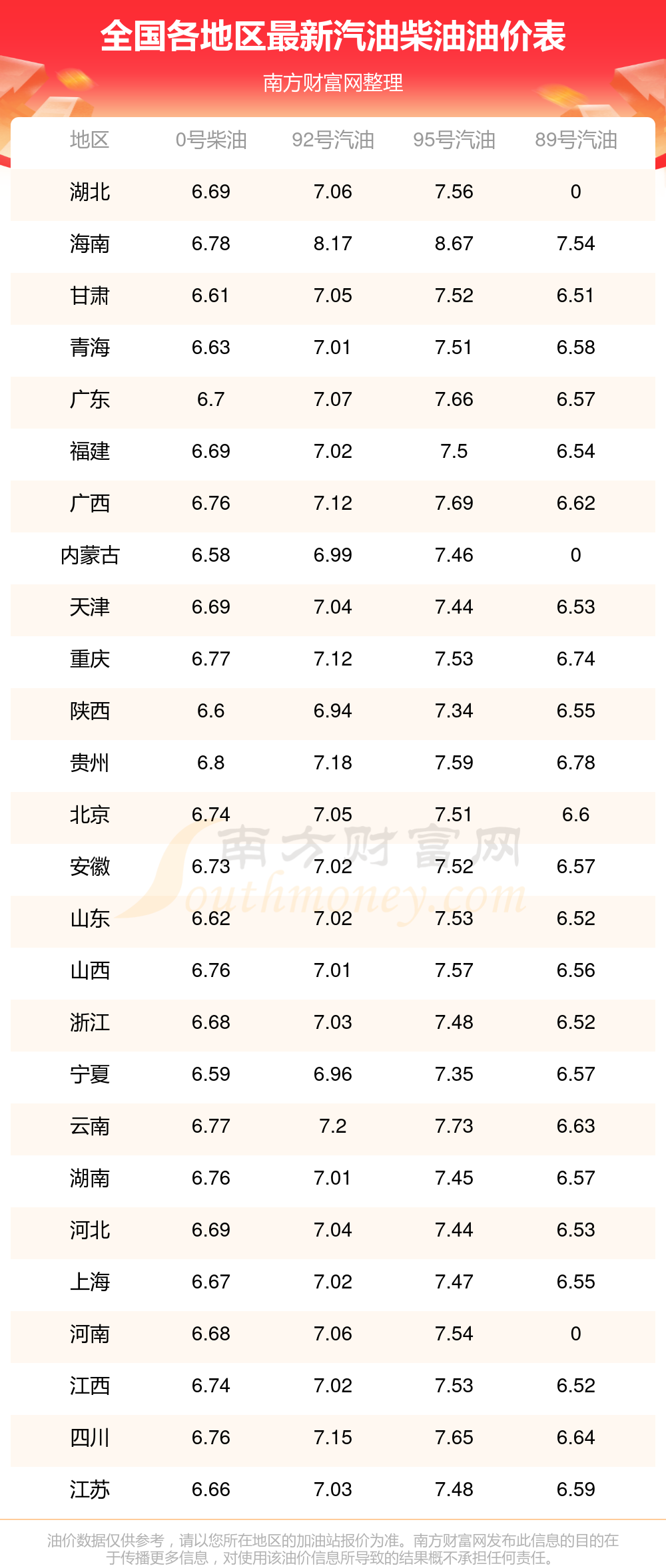 本站提供的油价数据仅供参考,具体数据以加油站报价为准。