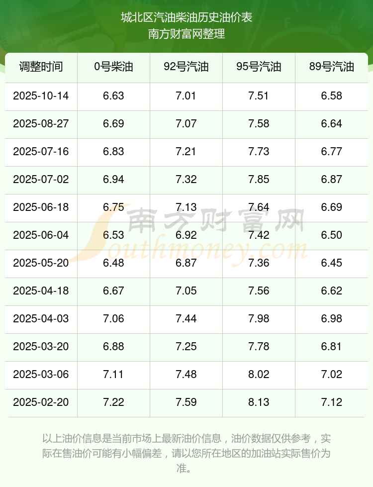 城北区今日油价查询_城北区汽油价格一览表(10月19日)