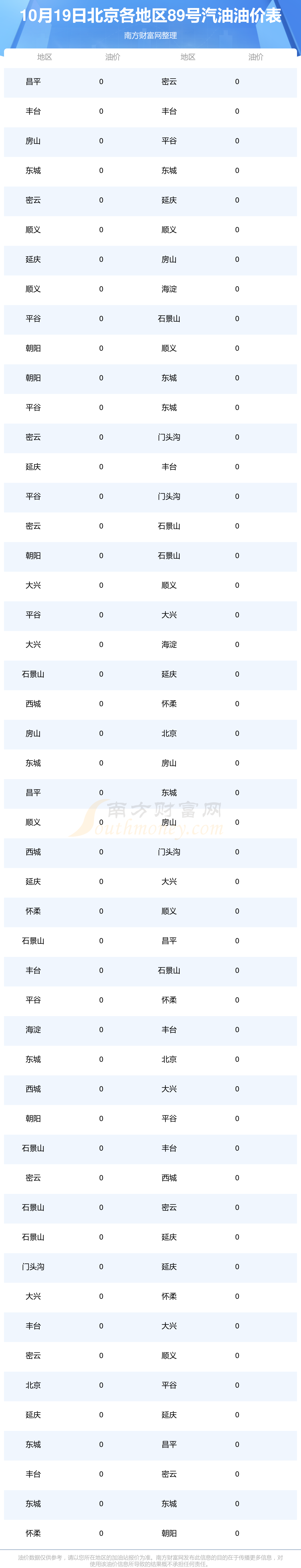 北京各地区最新89号汽油油价表
