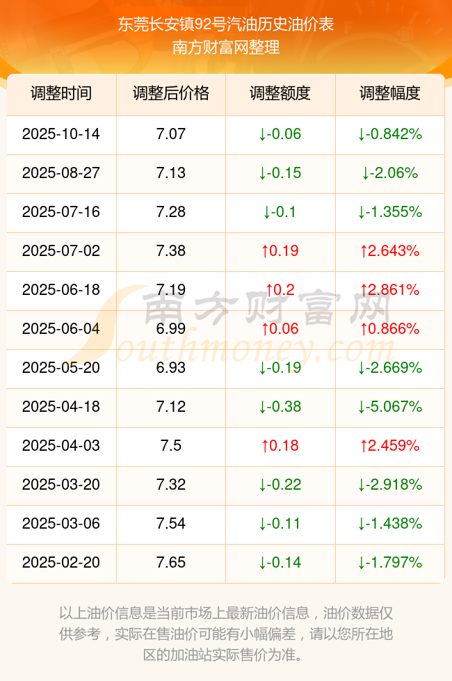 10月19日东莞长安镇92号汽油今日价格(92号汽油油价查询)