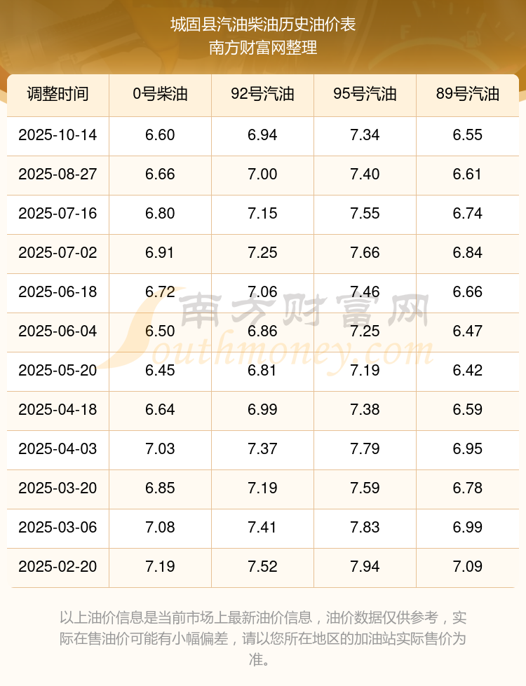 城固县今日油价:10月19日城固县汽油价格一览表