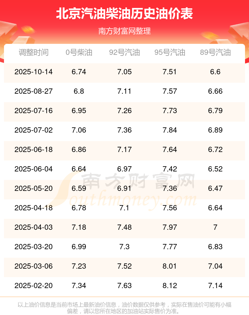 北京油价今天多少钱一升_10月19日北京汽油价格多少