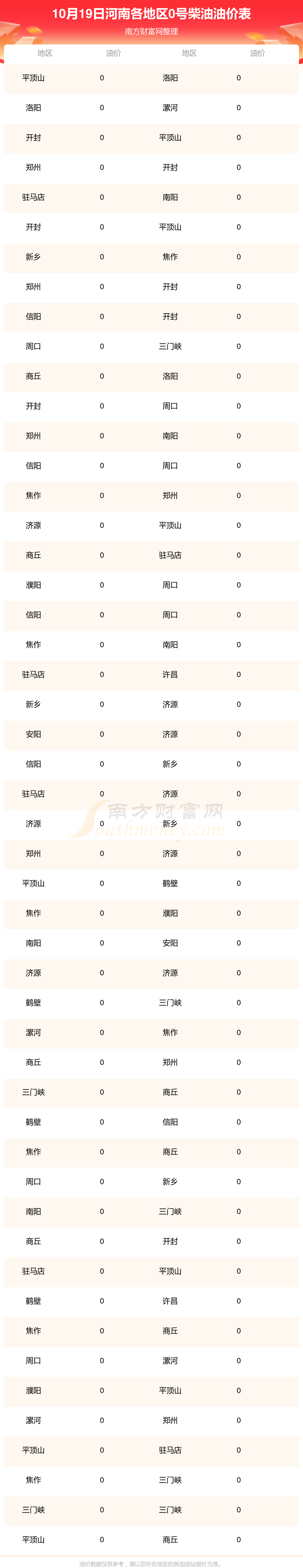 今日宁夏0号柴油油价多少钱一升(10月19日) 油价网2025-10-19 16:07 今日陕西铜川宜君县油价查询(10月19日92号、95号汽油价格一览) 油价网2025-10-19 16:01 城北区今日油价查询_城北区汽油价格一览表(10月19日) 油价网2025-10-19 15:57