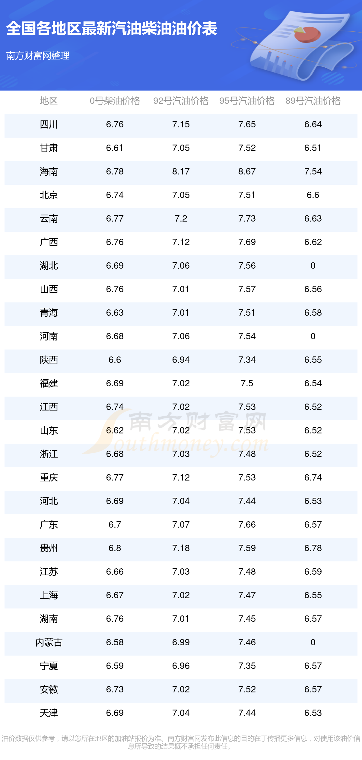 全国各地区最新油价表
