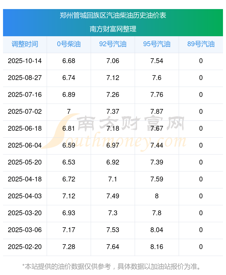 今日郑州管城回族区油价,郑州管城回族区汽油价格查询(10月19日)