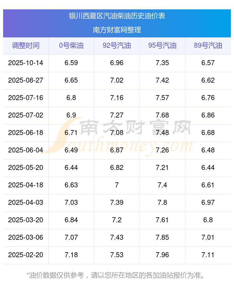10月19日银川西夏区汽油价格查询(银川西夏区今日油价格)