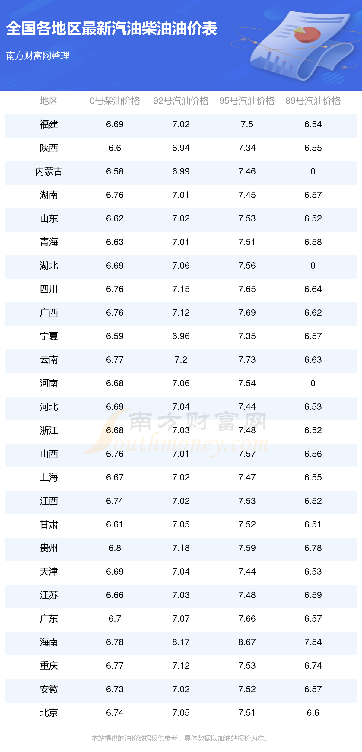 油价数据仅供参考,请以您所在地区的各加油站报价为准。