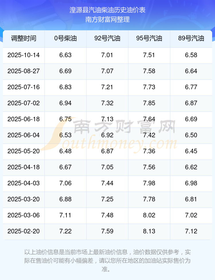 今日10月20日油价查询_湖南今日油价95、92号汽油价格_柴油价格 油价网2025-10-20 07:03 今日北京油价查询 _ 10月20日92号_95号汽油价格今日多少钱 油价网2025-10-20 06:44 天津89号汽油今日油价_89号汽油多少钱一升(10月20日) 油价网2025-10-20 06:38 山西0号柴油今日油价查询_山西0号柴油油价走势图(10月20日) 油价网2025-10-20 06:14