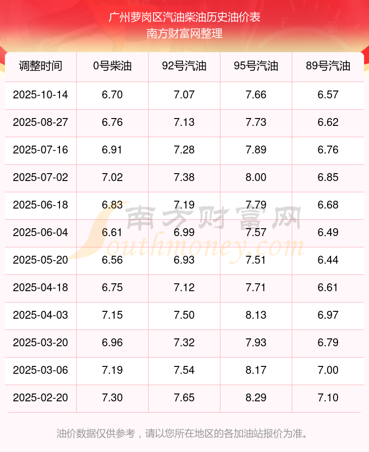 广州萝岗区今日油价_10月20日广州萝岗区油价一览表