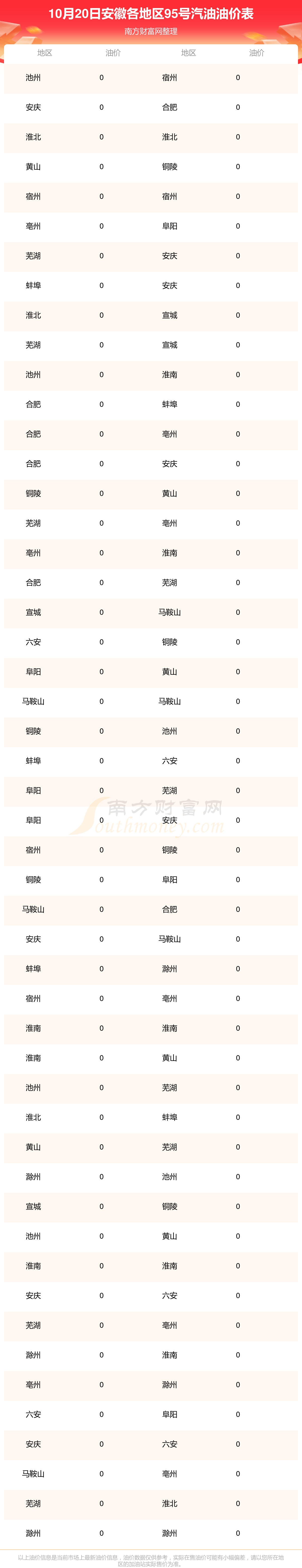 安徽今日油价_10月20日安徽92号、95号汽油价格(多少钱一升)