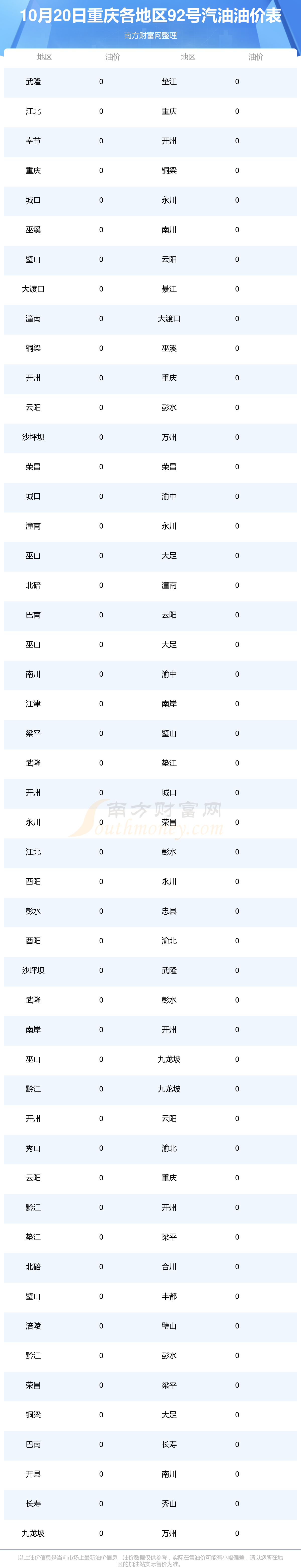 92号汽油汽油价格_10月20日重庆92号汽油油价查询