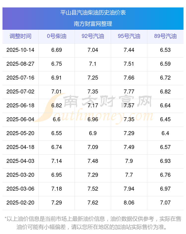 今日平山县油价查询(10月20日92号、95号汽油价格一览)