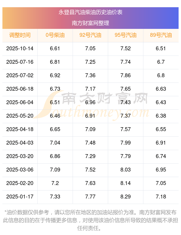 福建今日油价_福建92号95号汽油价格一览表(10月20日) 油价网2025-10-20 10:51 10月20日今日油价查询_成都郫都区0号柴油油价表一览 油价网2025-10-20 10:50 贵州今日油价格表一览(10月20日贵州汽油价格查询) 油价网2025-10-20 10:48 江苏油价调整最新消息:今天10月20日江苏加油站92、95号汽油价格 油价网2025-10-20 10:45