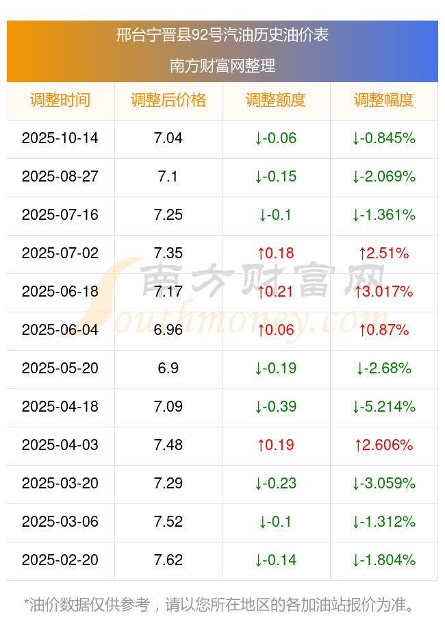 邢台宁晋县92号汽油油价今日价格一览表(10月20日)