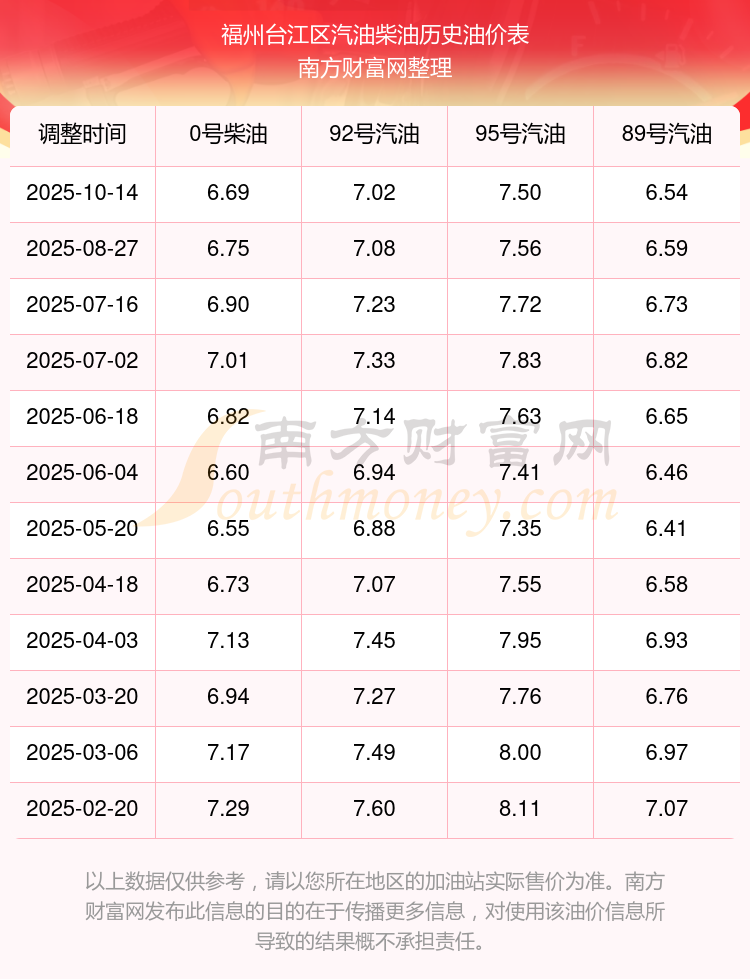 福州台江区今日油价_10月20日福州台江区油价一览表
