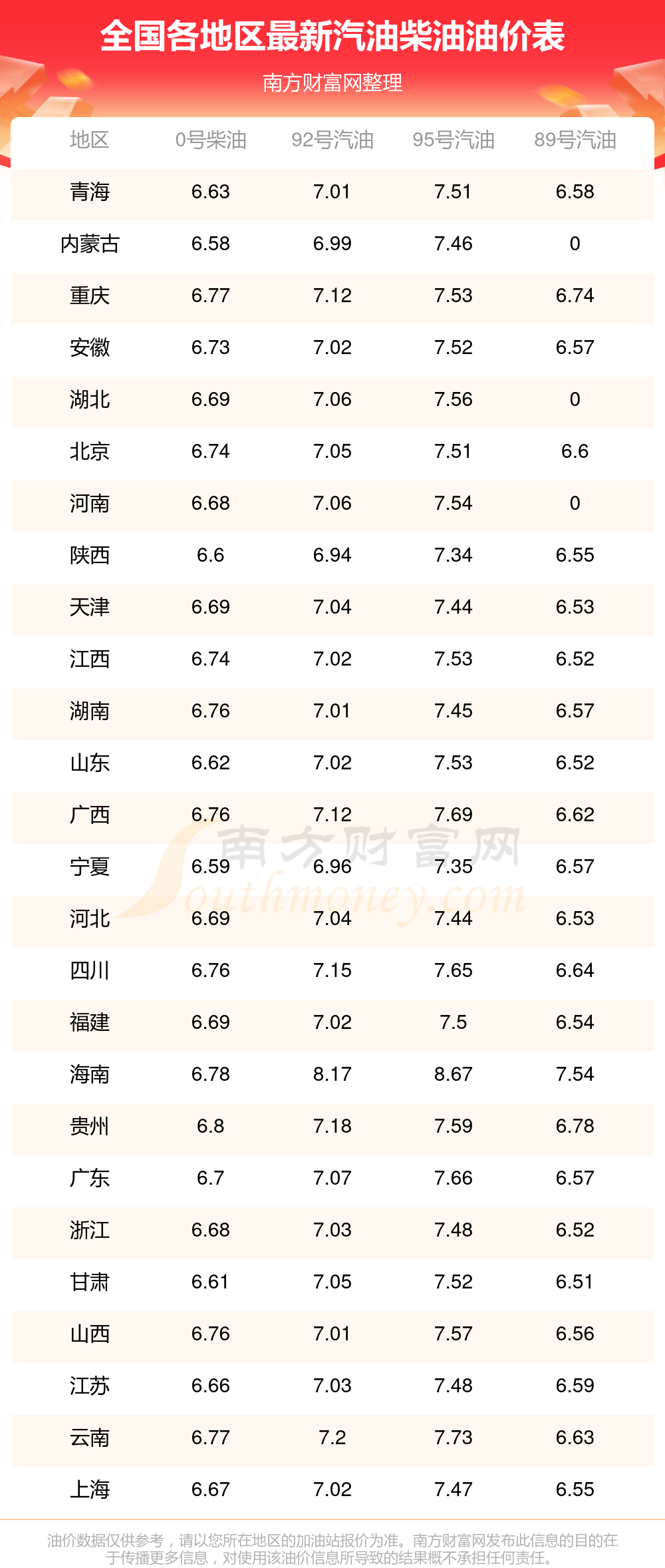 国内95号汽油今日油价_10月20日95号汽油最新油价查询