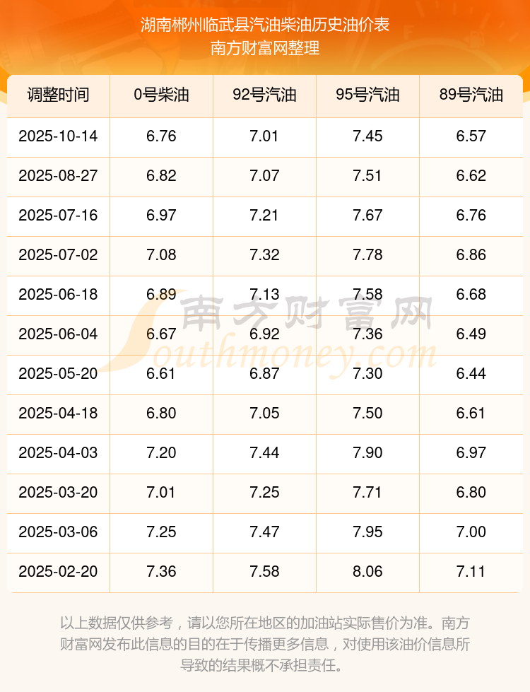 【湖南郴州临武县今日油价】10月20日汽油价格多少钱一升?