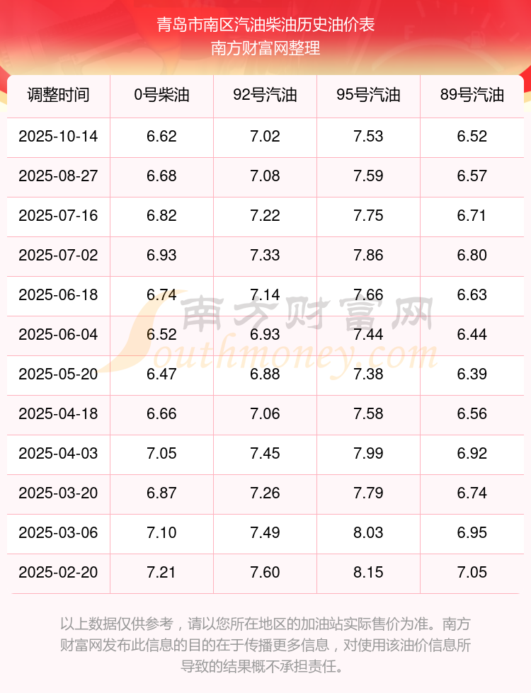 10月20日青岛市南区汽油价格查询(青岛市南区今日油价格)