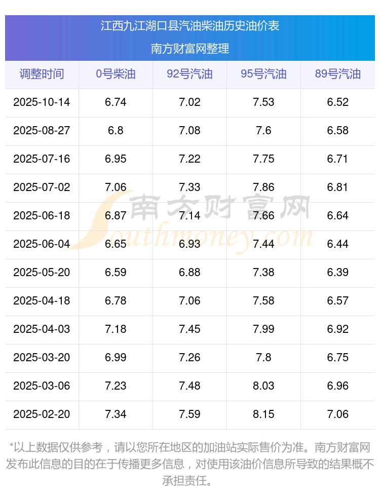 江西九江湖口县今日油价_92号95号汽油价格一览表(10月20日)