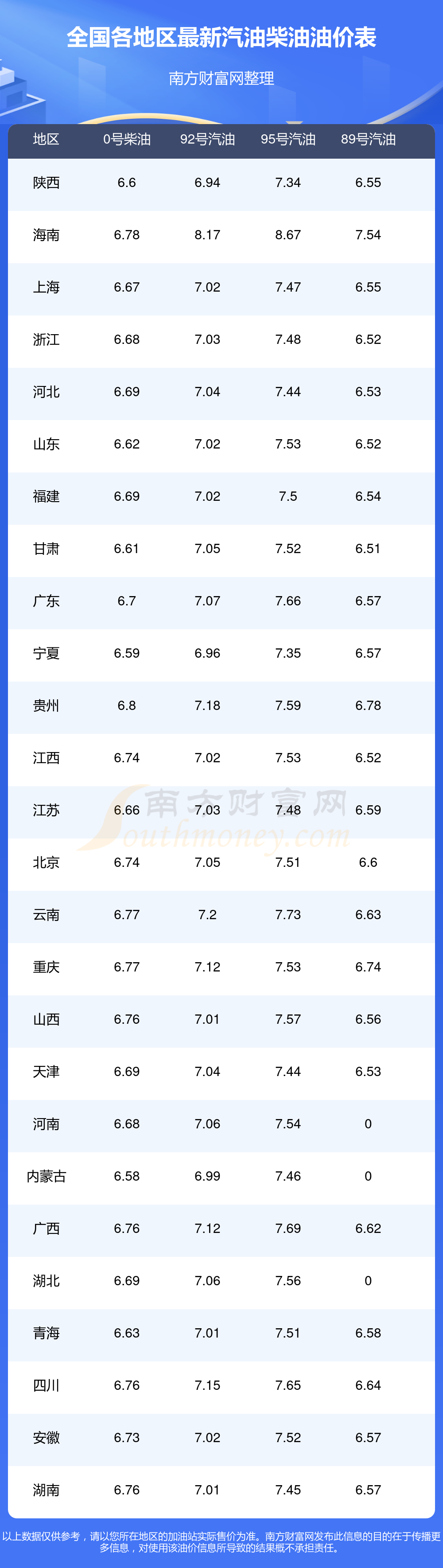 本站提供的油价数据仅供参考,具体数据以加油站报价为准。