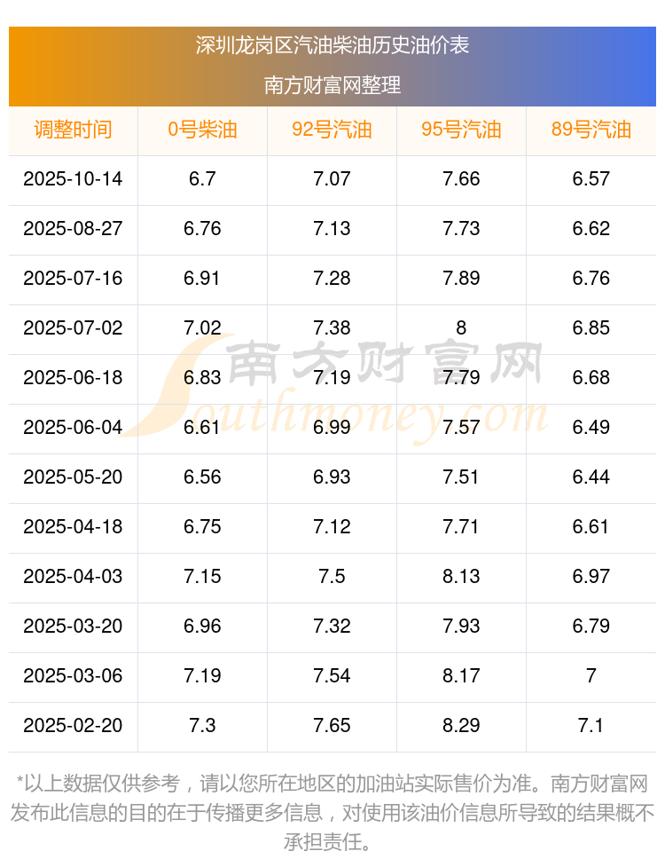 深圳龙岗区油价今日价格,汽油柴油价格一览表(10月20日)