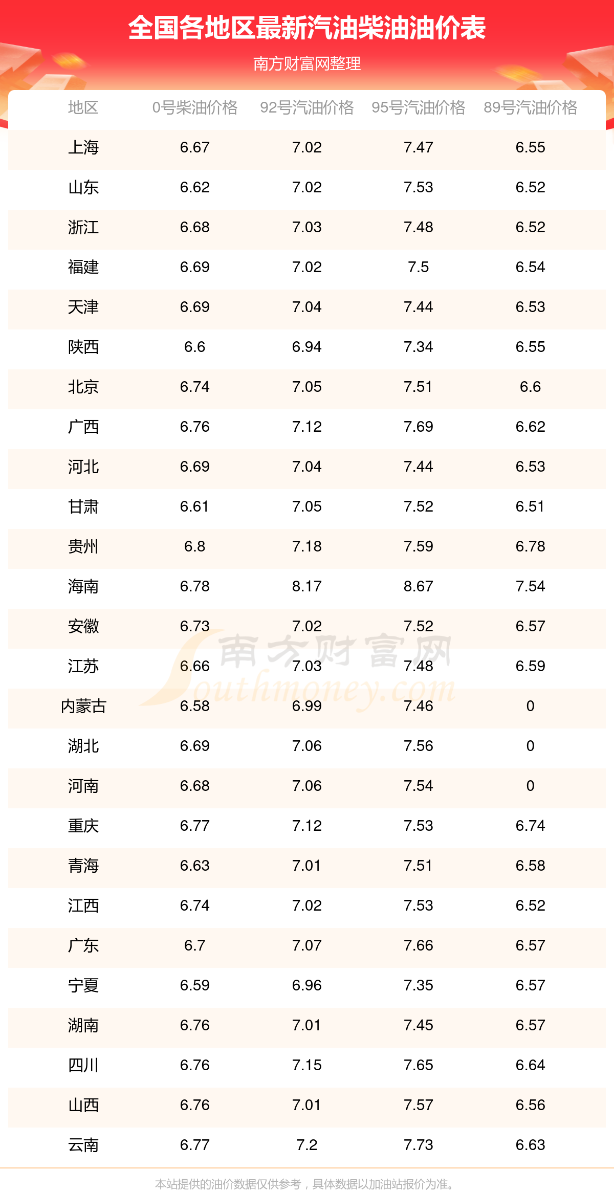 油价数据仅供参考,请以您所在地区的加油站报价为准。油价发布此信息的目的在于传播更多信息,对使用该油价信息所导致的结果概不承担任何责任。