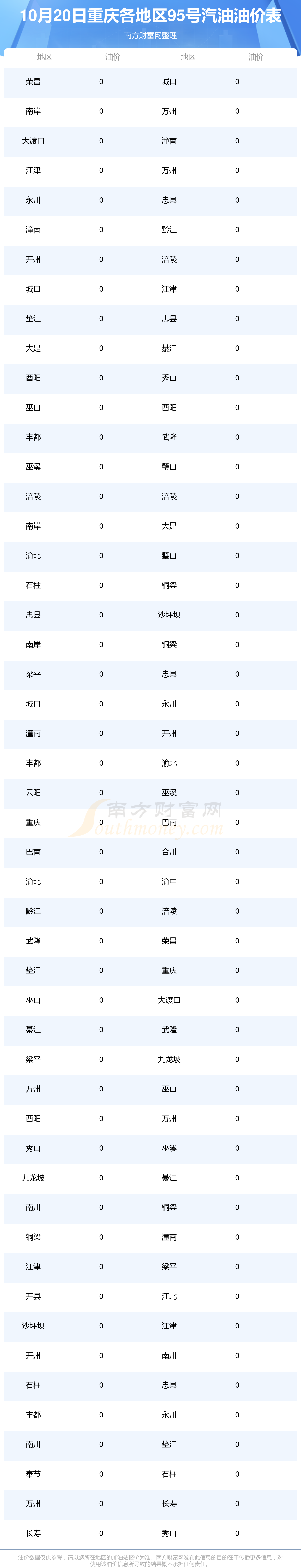 重庆今日油价(10月20日重庆95号汽油油价查询)