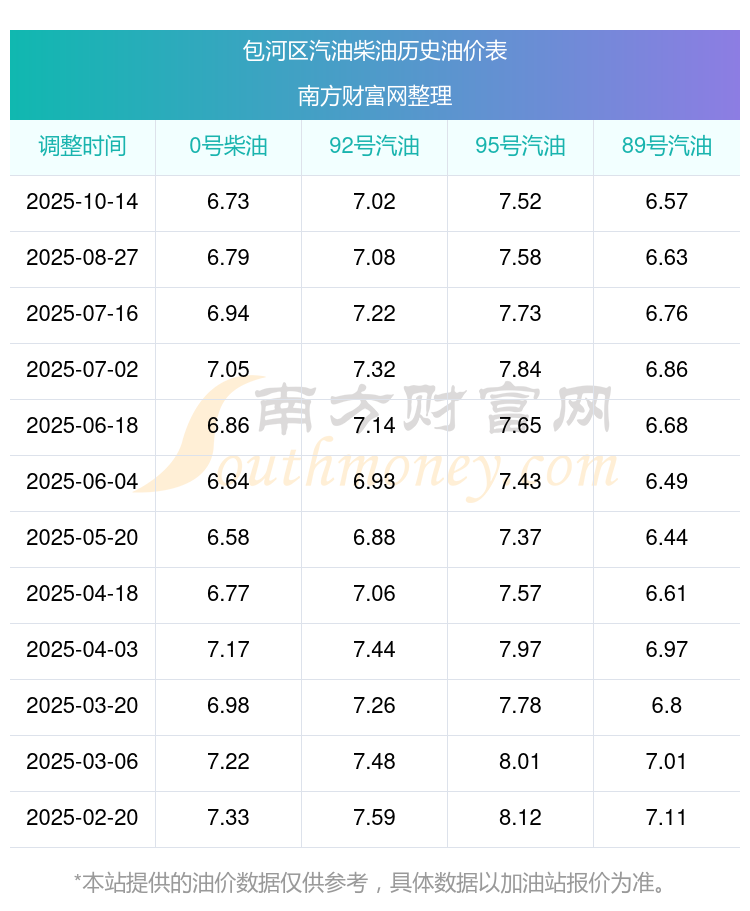 今日油价查询_包河区汽油柴油价格一览表(10月20日)