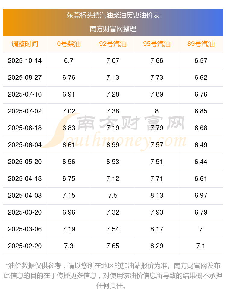 东莞桥头镇今日油价查询_东莞桥头镇汽油价格一览表(10月20日)
