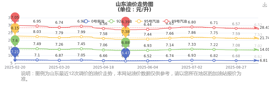 山东汽油柴油油价走势图