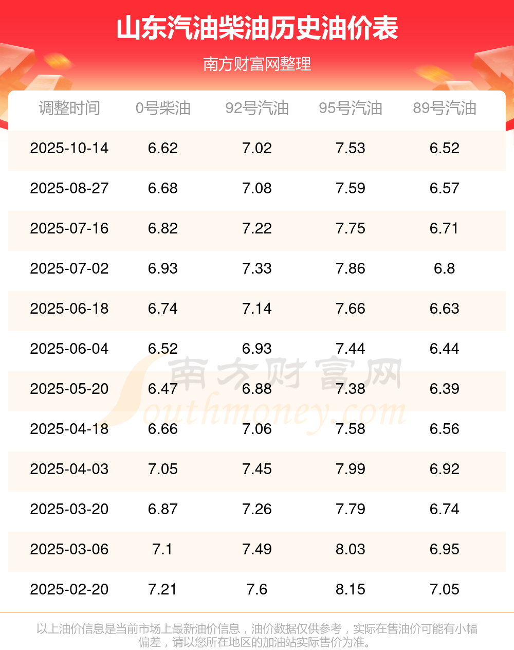 山东汽油柴油历史油价表