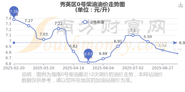 秀英区0号柴油10月21日的价格为6.78元/升,本次油价的调整时间为10月14日,对比上次油价调整时间8月27日的价格6.84元/升,共跌了0.06元,跌幅达0.877%。