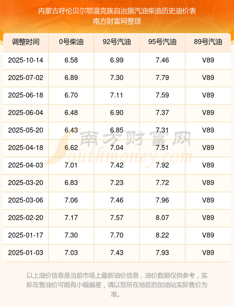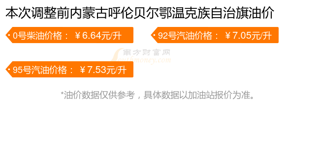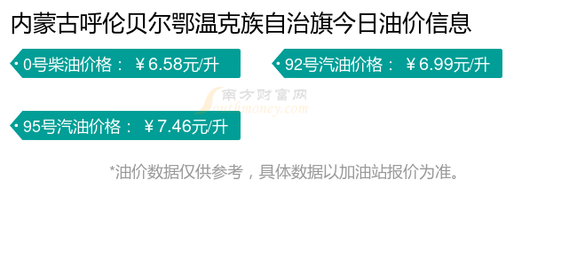 今日内蒙古呼伦贝尔鄂温克族自治旗油价查询(10月22日92号、95号汽油价格一览)