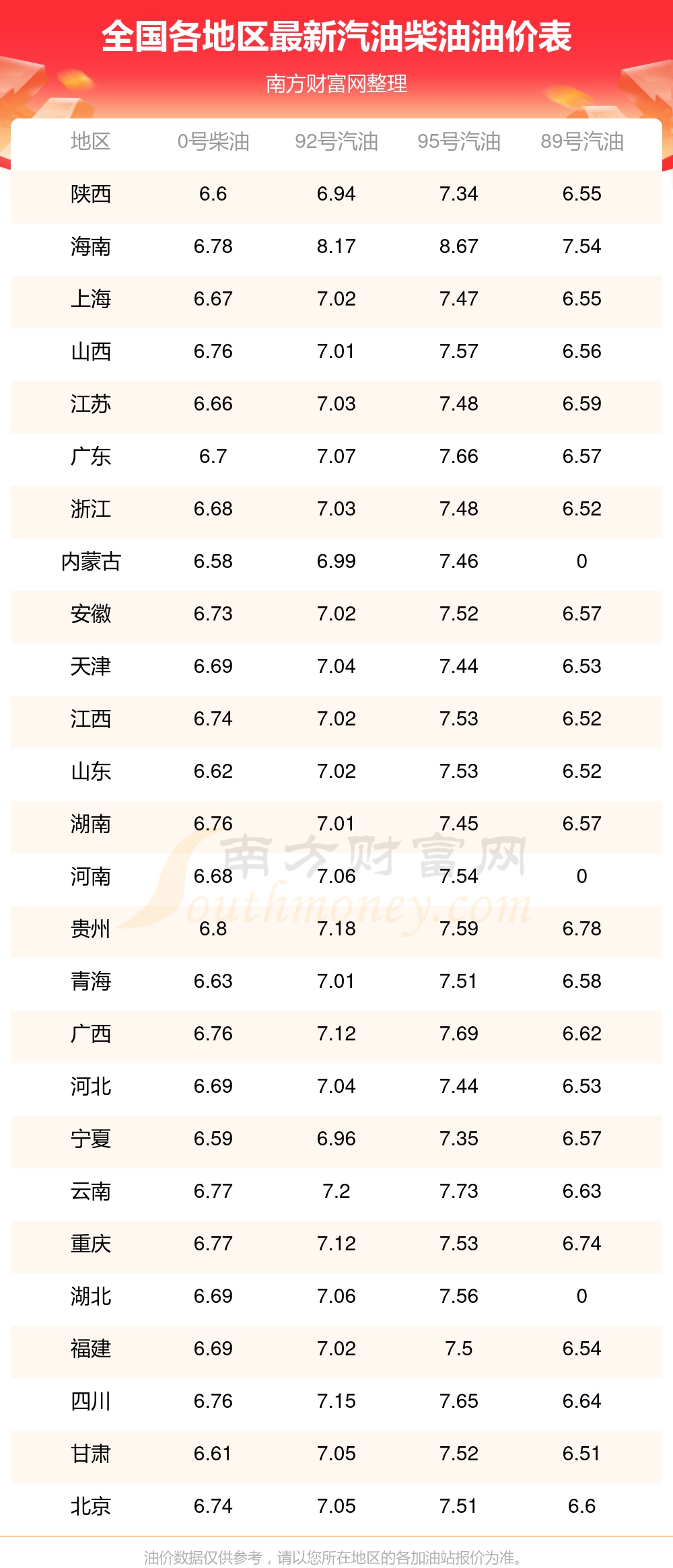 油价数据仅供参考,请以您所在地区的各加油站报价为准。