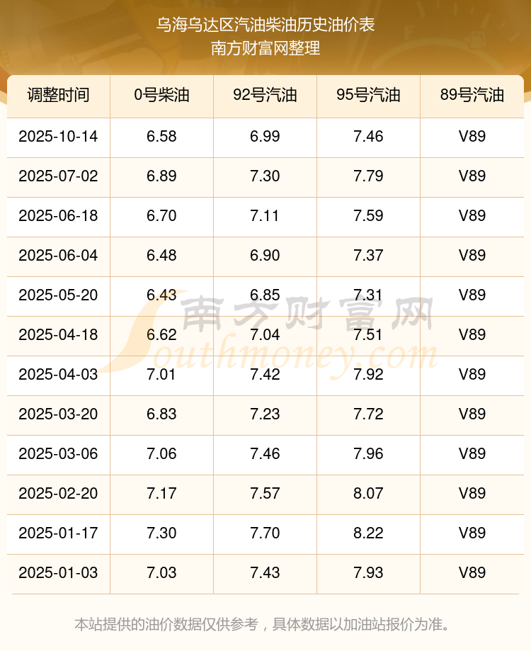 乌海乌达区今日油价:10月22日乌海乌达区汽油柴油价格查询