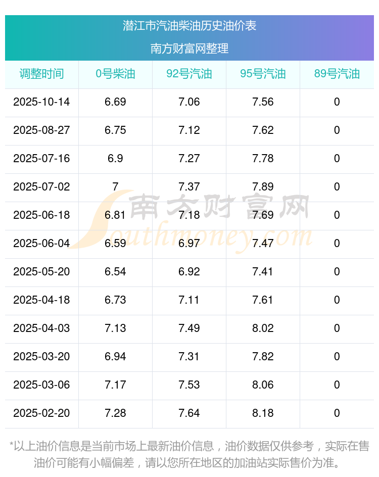 潜江市油价今天多少钱一升_10月22日汽油价格多少