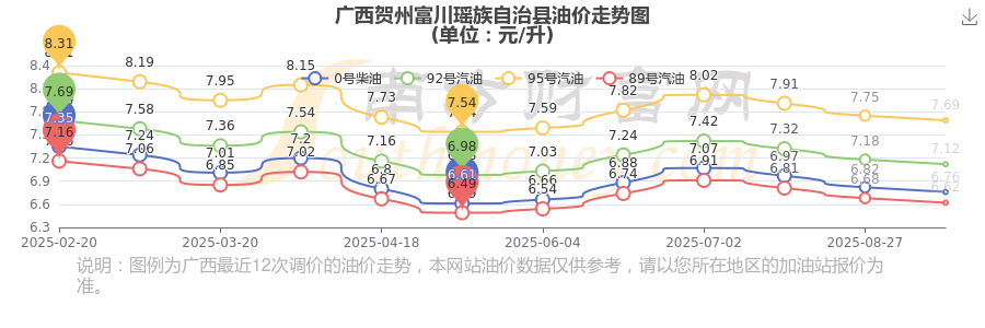 广西贺州富川瑶族自治县今日油价:10月22日广西贺州富川瑶族自治县汽油价格查询