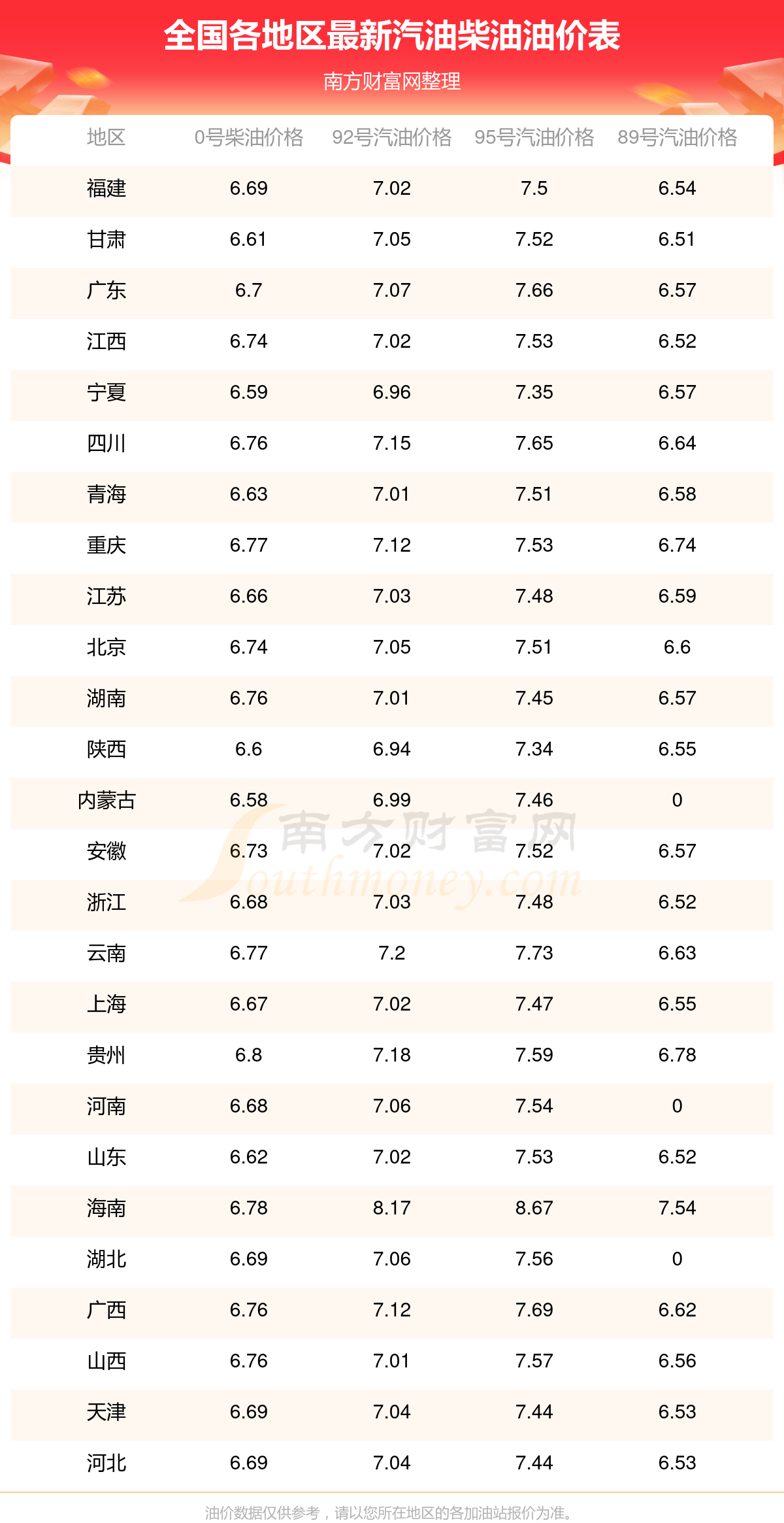 油价数据仅供参考,请以您所在地区的加油站报价为准。油价发布此信息的目的在于传播更多信息,对使用该油价信息所导致的结果概不承担任何责任。