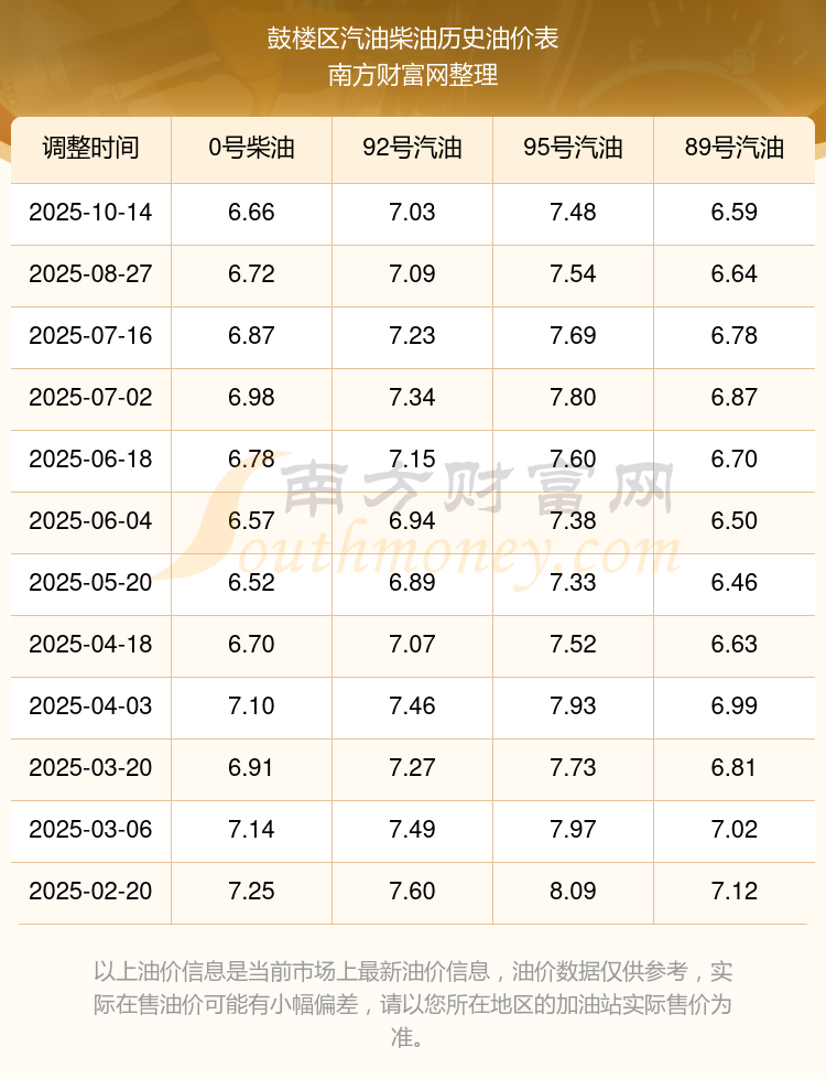 鼓楼区今日油价_10月22日鼓楼区油价一览表