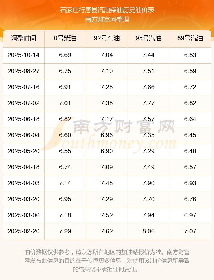 10月22日全国油价调整信息:10月14日调整后的95号汽油最新价格