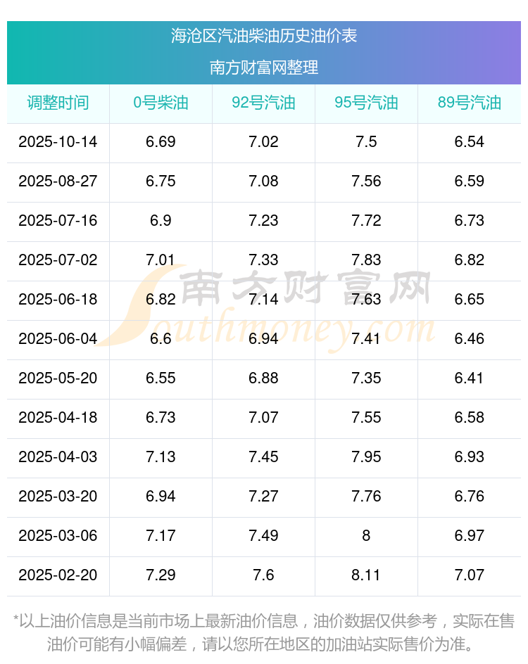 10月22日全国油价调整信息:10月14日调整后的95号汽油最新价格