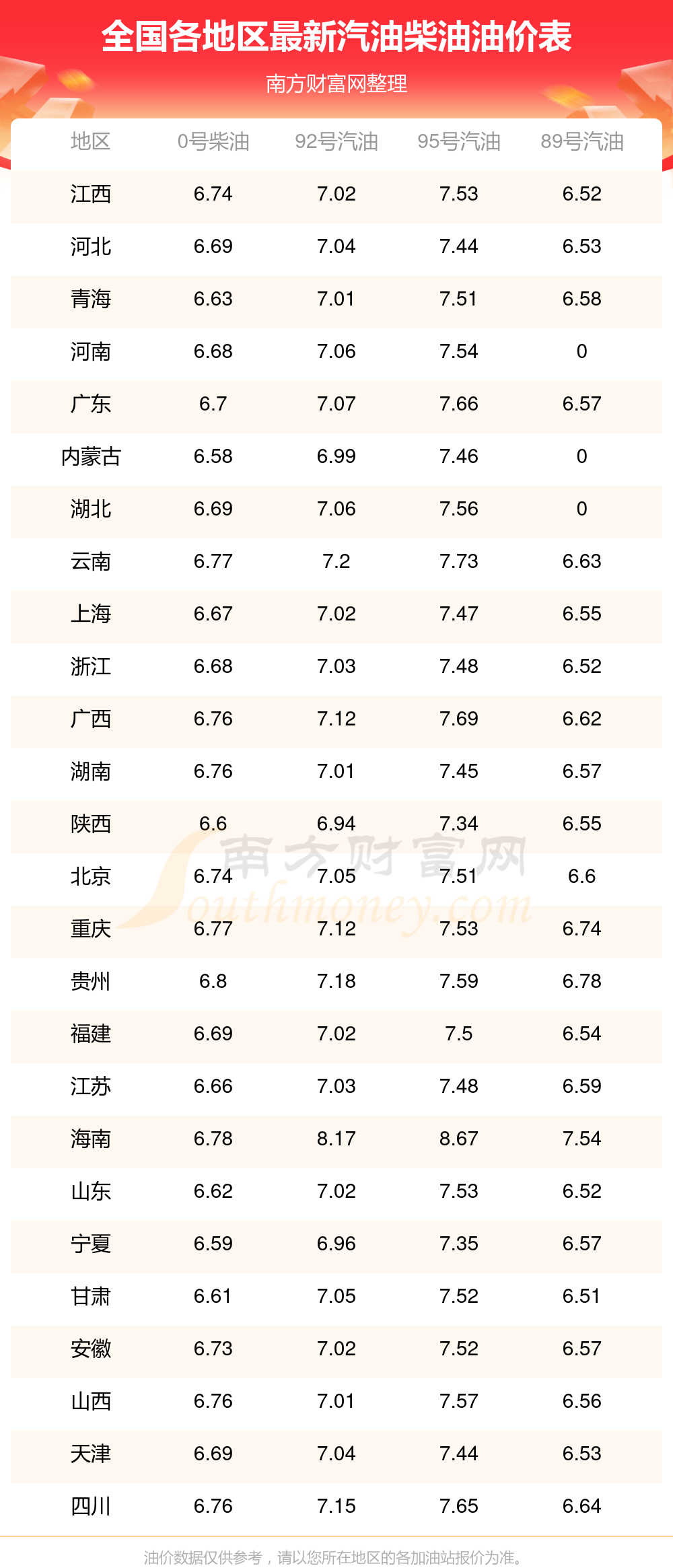 本站提供的油价数据仅供参考,具体数据以加油站报价为准。