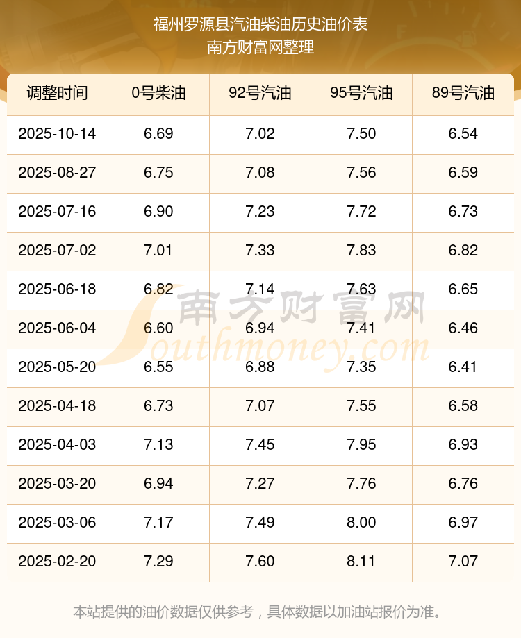 本站提供的油价数据仅供参考,具体数据以加油站报价为准。