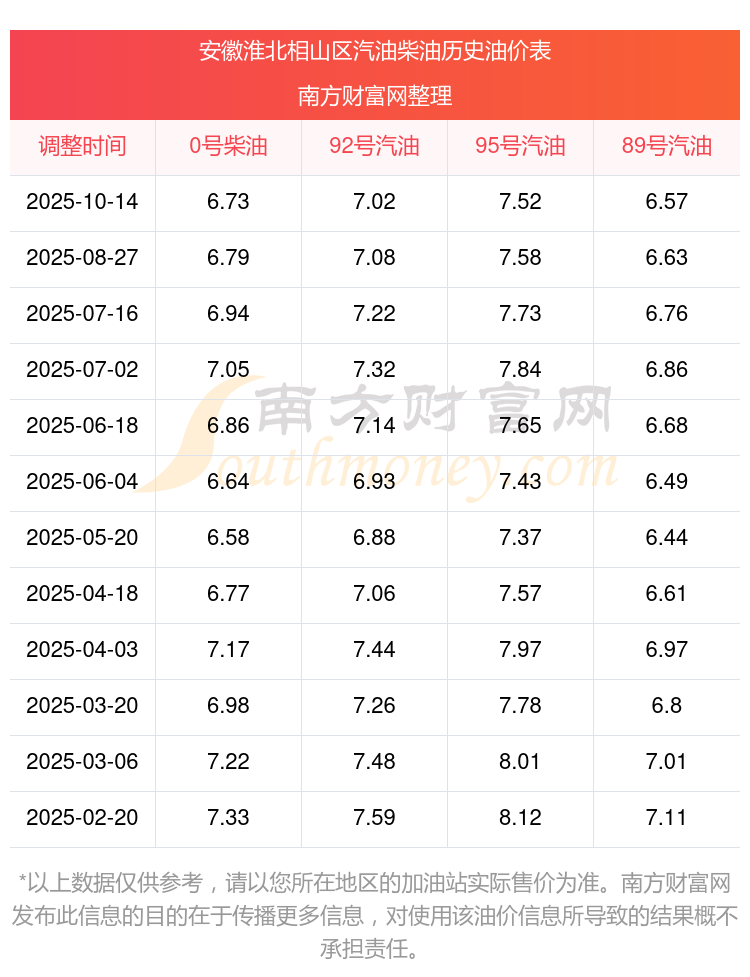 油价数据仅供参考,请以您所在地区的加油站报价为准。油价发布此信息的目的在于传播更多信息,对使用该油价信息所导致的结果概不承担任何责任。