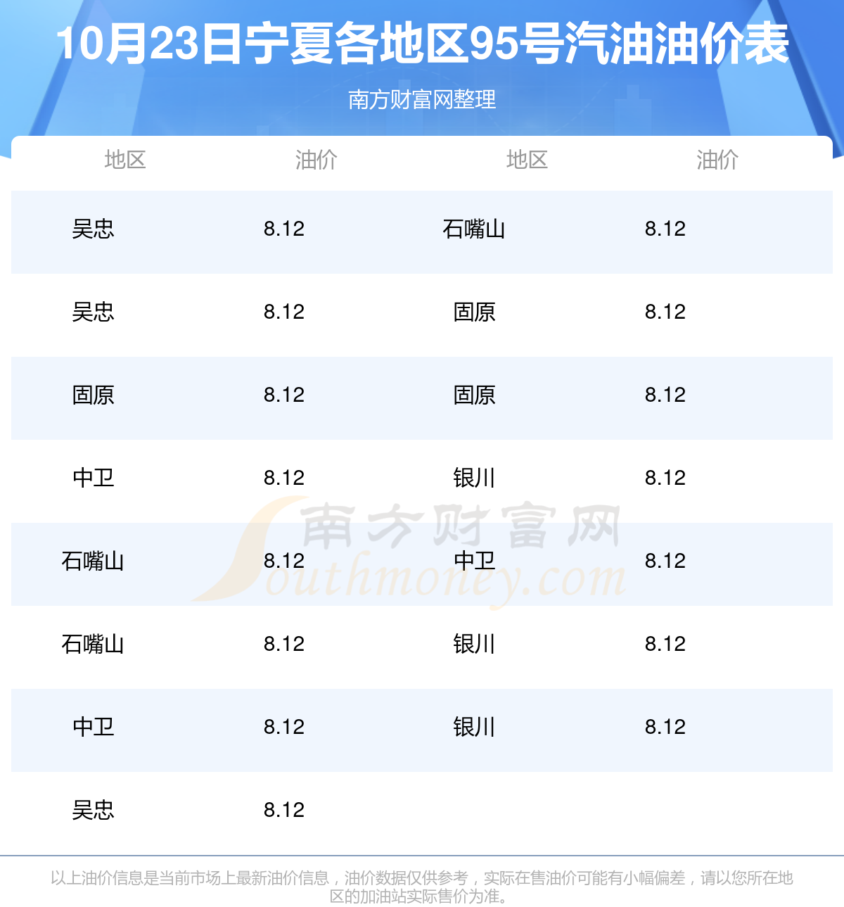 宁夏吴忠0号柴油油价今日价格一览表(10月22日)