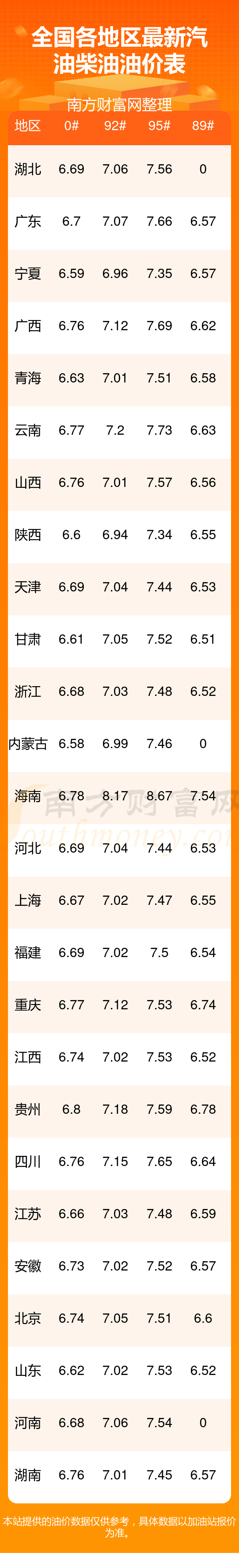 油价数据仅供参考,请以您所在地区的各加油站报价为准。