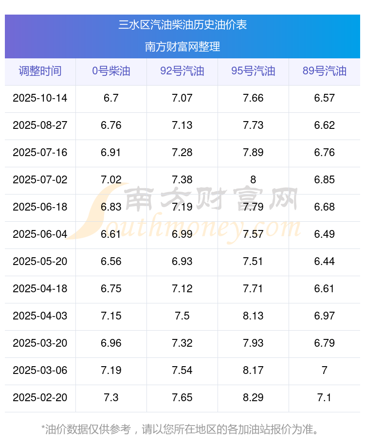 三水区今日油价查询_10月23日三水区汽油价格一览表