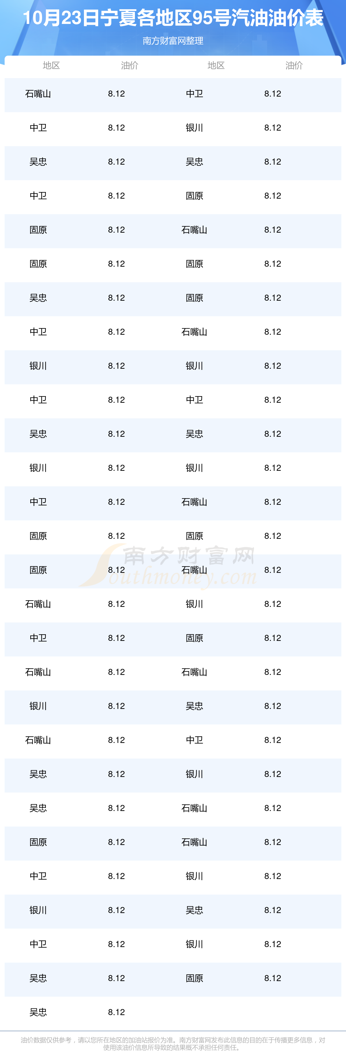 今日油价查询|10月23日西夏区汽油柴油价格一览表