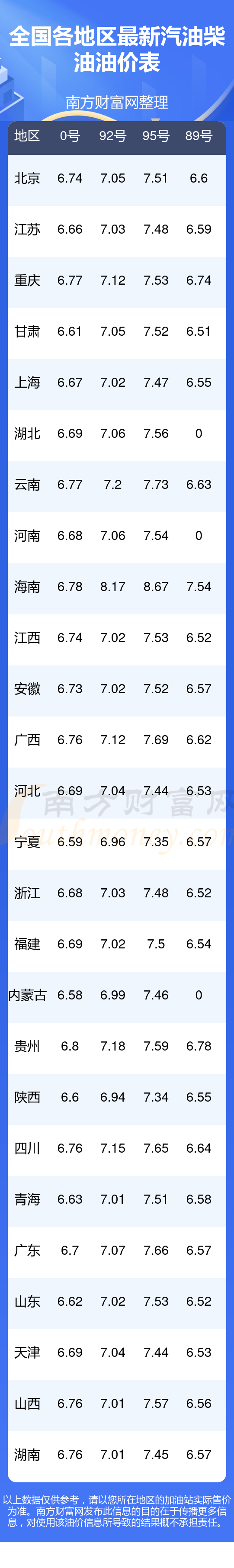 本站提供的油价数据仅供参考,具体数据以加油站报价为准。